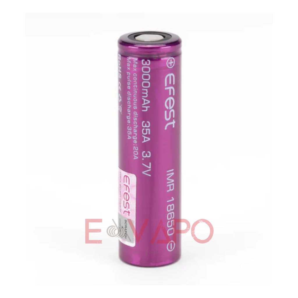 🔋 Výkonná baterie Efest 18650 s kapacitou 3000 mAh a proudem 35 A – ideální pro výkonné gripy, mody a nízkoodporové atomizéry.