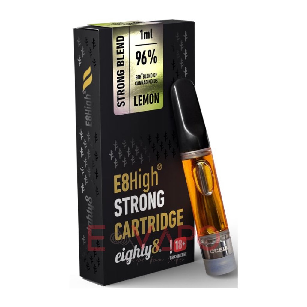 Přednaplněná cartridge Eighty8 E8High o objemu 1 ml přináší revoluční zážitek díky unikátní směsi legálních kanabinoidů s 96% obsahem E8H. Tato směs byla pečlivě sestavena českým výrobcem Eighty8 s důrazem na maximální HIGH efekt, který je přitom zcela legální napříč celou Evropou.