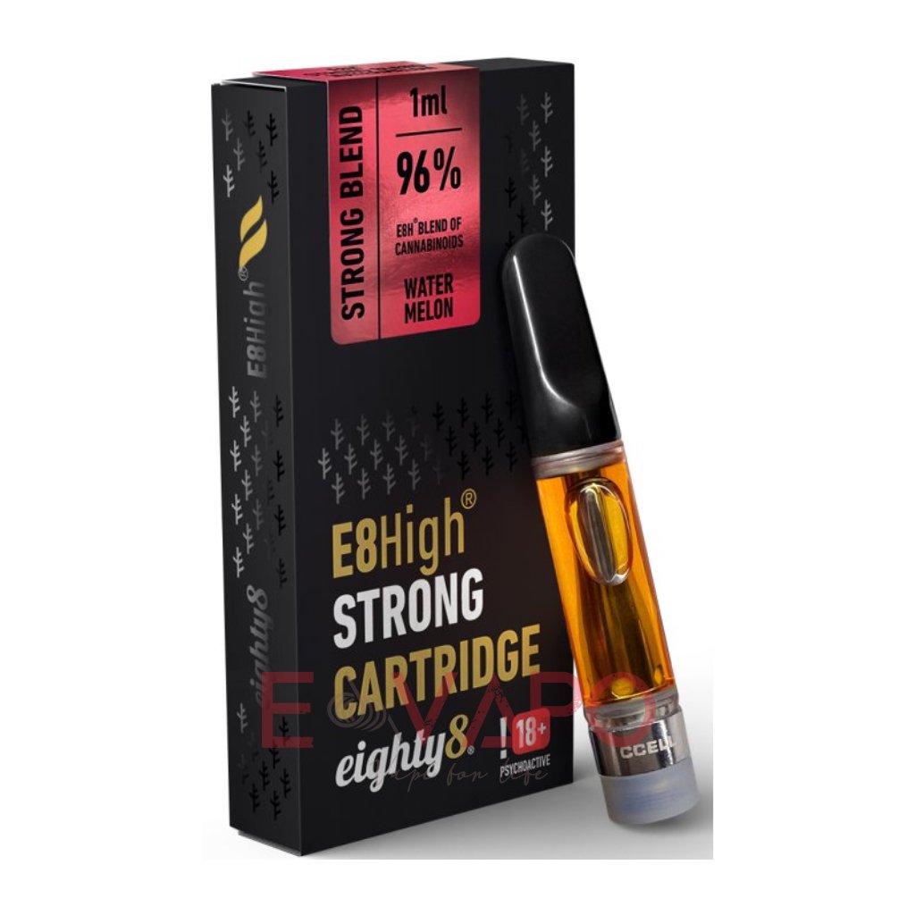 Přednaplněná cartridge Eighty8 E8High o objemu 1 ml přináší revoluční zážitek díky unikátní směsi legálních kanabinoidů s 96% obsahem E8H. Tato směs byla pečlivě sestavena českým výrobcem Eighty8 s důrazem na maximální HIGH efekt, který je přitom zcela legální napříč celou Evropou.