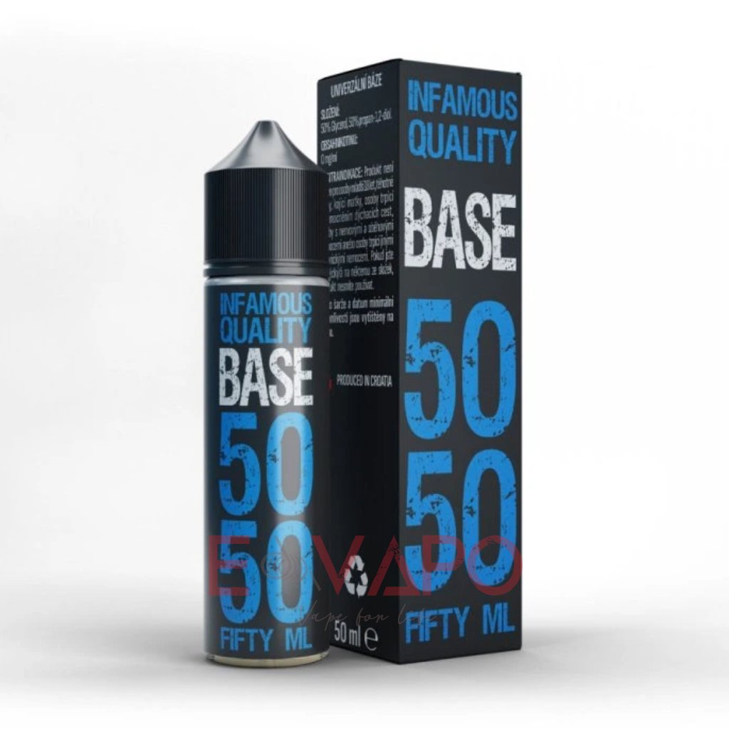 Infamous 50/50 je beznikotinová báze určená pro domácí míchání vlastních e-liquidů. Poměr 50 % VG (rostlinný glycerin) a 50 % PG (propylenglykol) zajišťuje vyváženou chuť a solidní množství páry. Je to ideální volba pro MTL (klasické potahování do pusy) a RDL (lehké potahování do plic) zařízení.