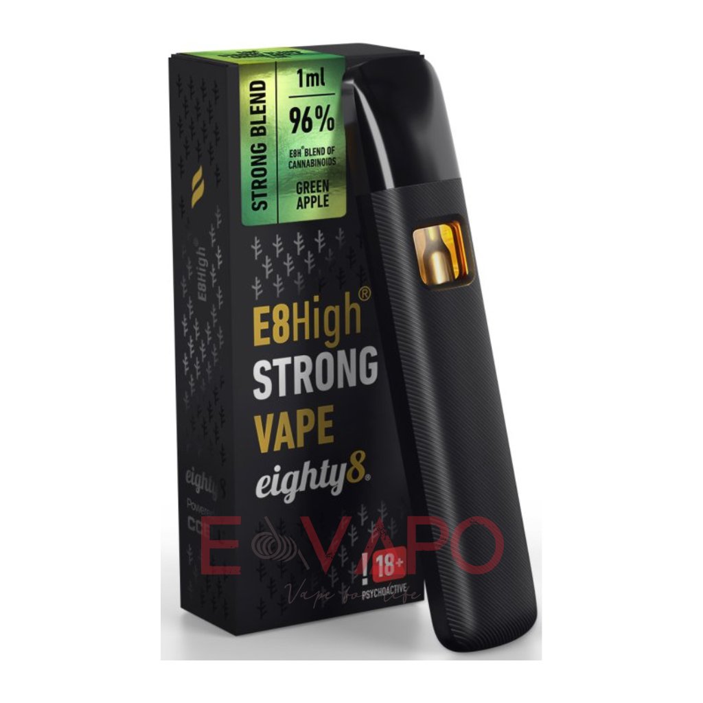Vaporizační pero Eighty8 E8High představuje novou generaci jednorázových vaporizérů od českého výrobce. Nádržka o objemu 1 ml je naplněna směsí obsahující 96 % E8H – inovativní a plně legální kombinaci kanabinoidů, která zajišťuje intenzivní a dlouhotrvající účinek.