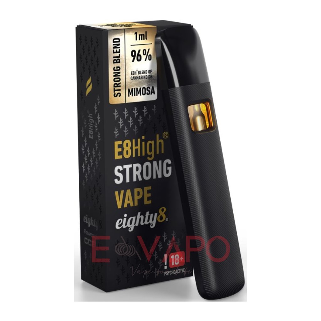 Vaporizační pero Eighty8 E8High představuje novou generaci jednorázových vaporizérů od českého výrobce. Nádržka o objemu 1 ml je naplněna směsí obsahující 96 % E8H – inovativní a plně legální kombinaci kanabinoidů, která zajišťuje intenzivní a dlouhotrvající účinek.