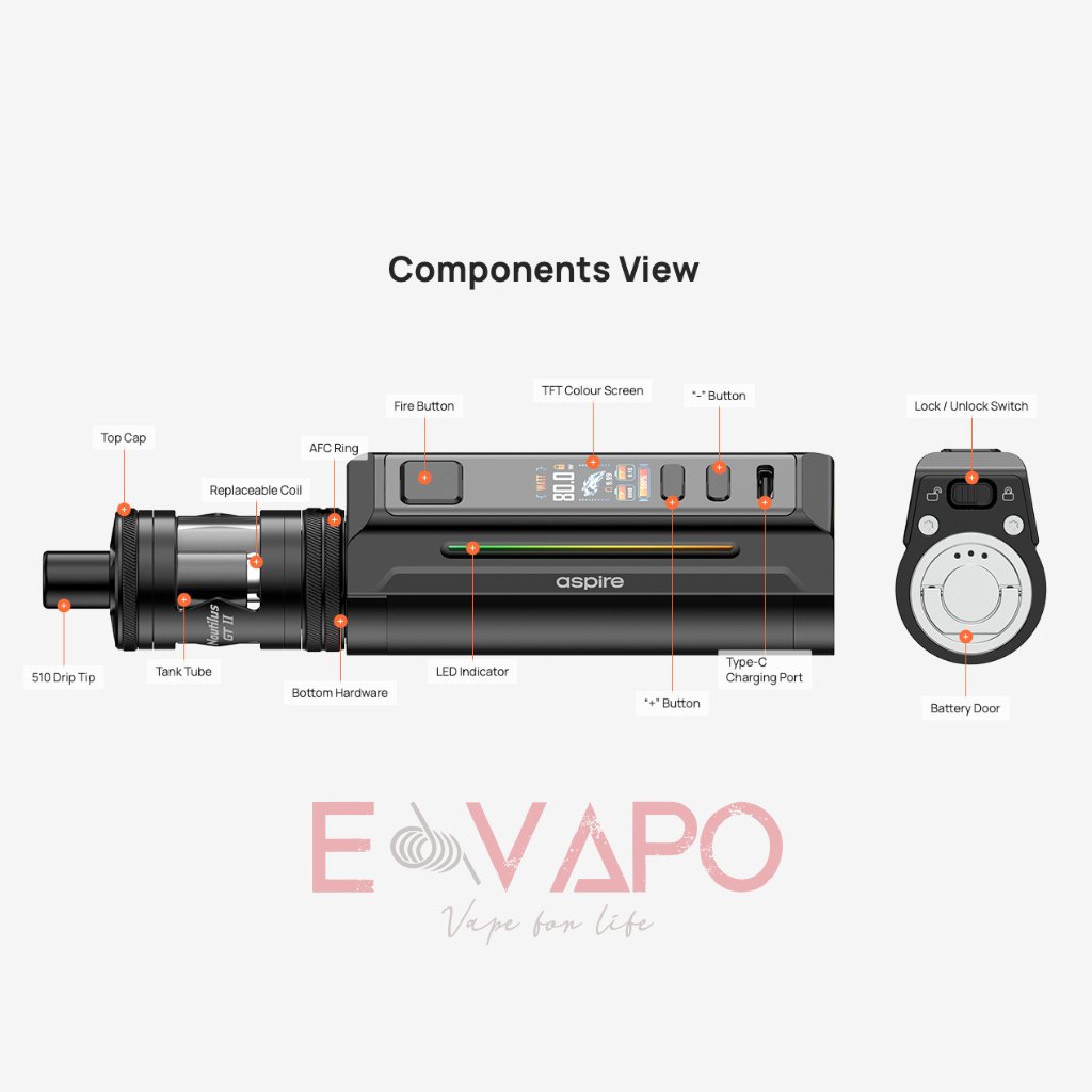 Díky USB-C konektoru s rychlým 2A nabíjením je zařízení připraveno k použití během několika minut. Aspire Zelos X80 je tak skvělou volbou pro vapery, kteří chtějí spolehlivý, elegantní a výkonný set s možností přizpůsobení podle vlastních potřeb.